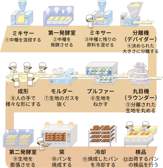 パンの製法は、全量中種法、中種法及びストレート法がある。